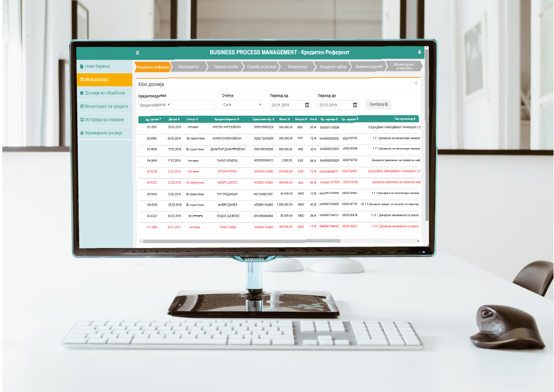 The system supports work transparency by tracking the actions of a certain loan dossier, the users indulged in the transfer of the dossier, the exact date and time of the action, as well as the total number of days, hours and minutes each user worked on a certain dossier. The system also offers configuration and tracking of the work time a certain task needs to be completed. Upon work time expiration, the dossier is marked in red to alarm the user.